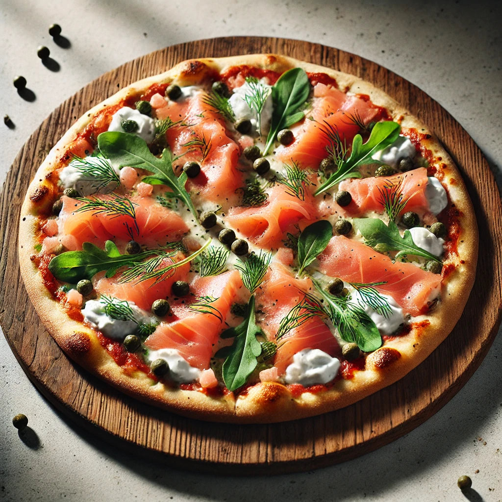 Pizza con Salmone Affumicato, Formaggio Crema e Capperi